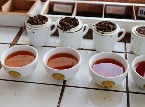 Black tea is plucked from the bush and withered in the open air. When the leaf becomes soft it is twisted and then fermented. The fermentation is the most important and skilled stage; this is when the leaf oxidizes and turns dark. Finally the leaf is cooked in a giant oven to seal in the flavor. Black tea is the British favorite, with milk and a couple of biscuits!